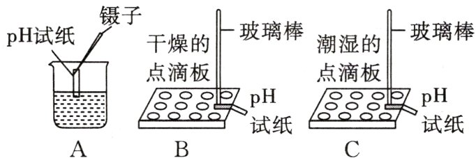 (2)如图是三位同学分别测定土壤酸碱度的操作示意图,其中正确的是______(填字母,下同),可能导致被测溶液的pH发生改变的错误操作是______。