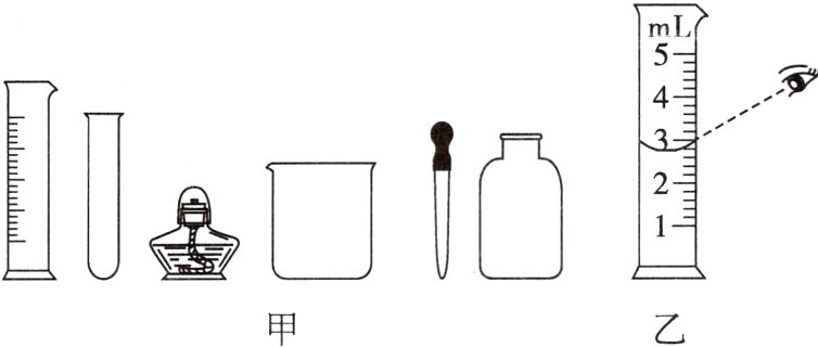 (5)用量筒量取液体读数时,视线与液体凹液面的最低处的位置关系是________(填“俯视”“仰视”或“平视”)。图乙表示的是某同学用5 mL的量筒量取一定体积液体的操作。请你仔细观察该图,判断量筒内液体的体积实际是________(填“大于”“小于”或“等于”)3 mL。