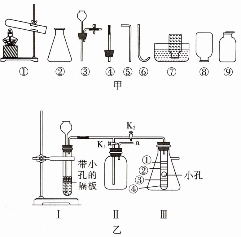 12. 如图甲是实验室制取气体的常用仪器。请根据要求填空: