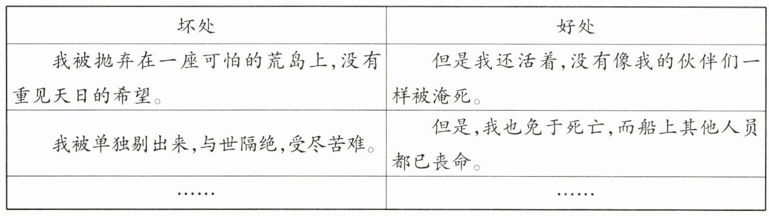 3.聪明坚强、乐观向上 他在荒无人烟的孤岛上没有绝望,也没有一味地等待别人的救援,而是凭借自己的聪明才智和顽强意志,克服重重困难,生存了下来