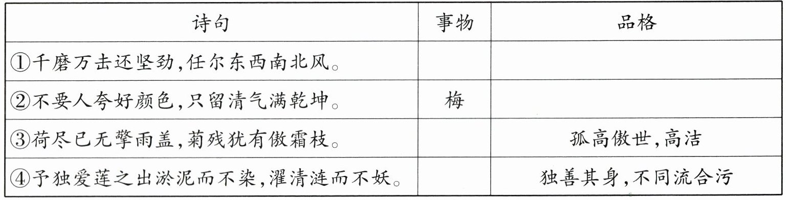 我想用诗句________(填序号)来评价________(填人名),因为他像__________一样,