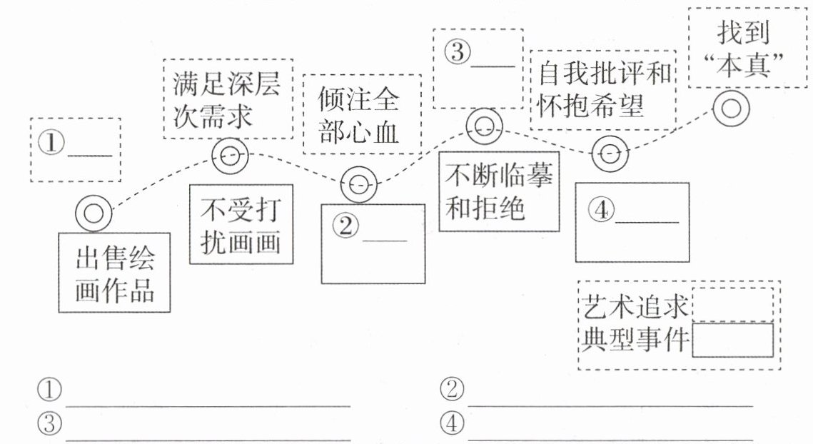 9.小启绘制了文森特艺术追求的轨迹图,请你补全内容。(4分)