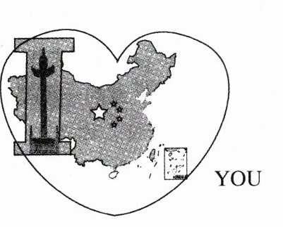 (2)该图案以象征中国的华表作为字母“I”,用含有中国地图的心形图案喻示“爱”,外加一个英文单词“YOU”,巧妙地表达了“祖国在我心中”的主题。