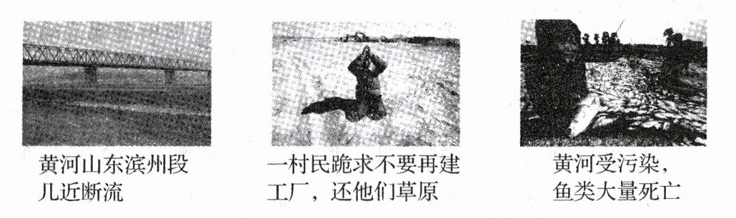 ①联系生活实际和图片,说说我们的母亲河遇到了哪些生态危机。(3分)