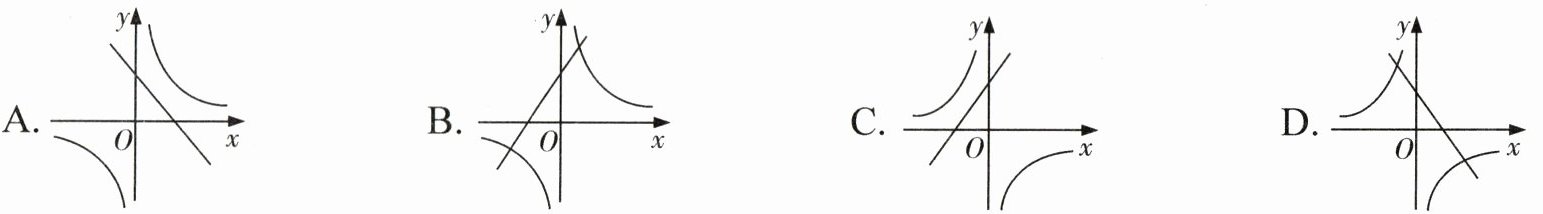 6. A 【解析】当$k>0$时,一次函数$y = -kx + k$经过第一、二、四象限,反比例函数$y = \frac{k}{x}$的图象经过第一、三象限,故 A 选项的图象符合要求;