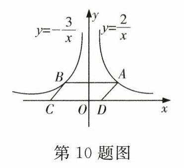 10.如图,点A是反比例函数y=$\frac{2}{x}$(x>0)的图象上任意一点,AB//x轴交反比例函数y=一$\frac{3}{x}$的