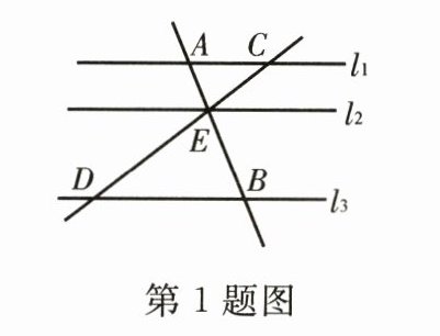 1. 如图,直线$l_1// l_2// l_3$,已知$AE = 1$,$BE = 2$,$DE = 3$,则$CD$的长为( )