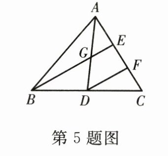5. 如图,$AD$是$\triangle ABC$的中线,$AE = EF = FC$,$BE$交$AD$于点$G$,则$\frac{BG}{BE}$等于( )