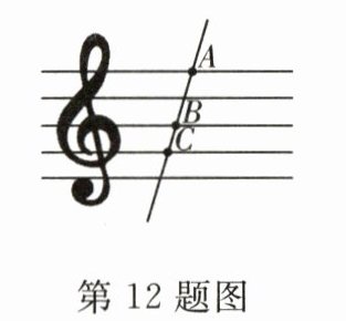 12. (丽水中考)如图,五线谱是由等距离、等长度的五条平行横线组成的,同一条直线上的三个点$A$,$B$,$C$都在横线上. 若线段$AB = 3$,则线段$BC$的长是( )