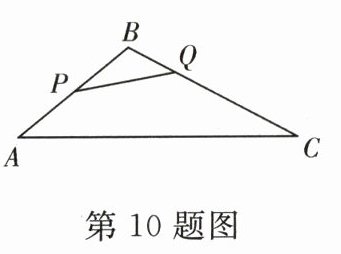 10. 如图,在△ABC中,AB = 8,BC = 16,点P是AB边的中点,点Q是BC边上的一个动点,当BQ = ________时,△BPQ与△BAC相似.