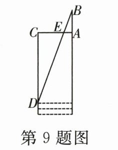 9. (数学文化)《九章算术》中记载了一种测量古井水面以上部分深度的方法. 如图所示,在井口A处立一根垂直于井口的木杆AB,从木杆的顶端B观察井水水岸D,视线BD与井口的直径AC交于点E,如果测得AB = 1米,AC = 1.6米,AE = 0.4米,那么CD为________米.