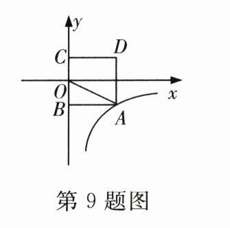 9.如图,在平面直角坐标系中,点A为反比例函数y=一$\frac{4}{x}$(x>0)的图象上一动点,AB⊥y轴,垂足为B,以AB为边作正方形ABCD,其中CD在AB上方,连接OA,则OA²一OC的值为__________.