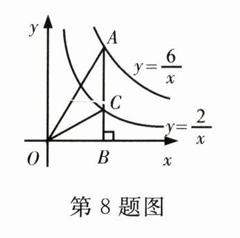 8.如图,点A是反比例函数y=$\frac{6}{x}$的图象上一点,过点A作AB⊥x轴,垂足为B,线段AB交反比例函数y=$\frac{2}{x}$的图象于点C,则△OAC的面积为__________.