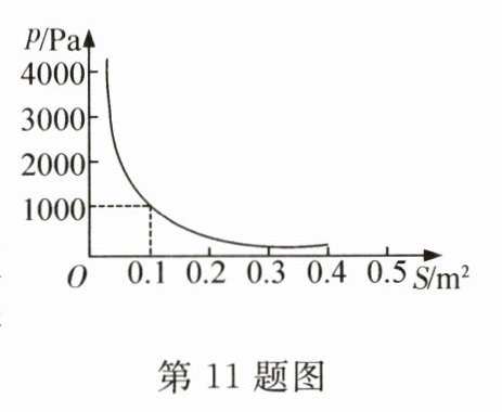 11.(山西中考)根据物理学知识,在压力不变的情况下,某物体承受的压 0 0..10.20.30.40.5S/m²强p(Pa)是它的受力面积S(m²)的反比例函数,其函数图象如图所