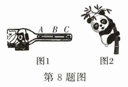 C [解析]一部普通智能手机的质量约为m = 150g = 0.15kg,手机的重力约为:G = mg = 0.15kg×10N/kg = 1.5N,手机对水平桌面的压力约为:F = G = 1.5N,手机的长约15cm、宽约8cm,则它平放在水平桌面上受力面积约为:S = 15cm×8cm = 120cm² = 0.012m²,手机对水平桌面的压强约为:p = $\frac{F}{S}$ = $\frac{1.5N}{0.012m²}$ = 125Pa,与150帕最接近,故C正确。