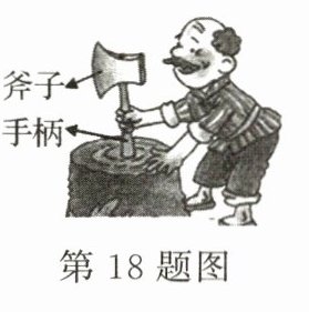18. 如图所示,斧子的手柄松了,用手柄的下端撞击树墩,斧子就被套紧了,请用物理知识解释这种现象。