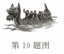 19. 如图所示的龙舟大赛,全体划桨手不停地向后划水,龙舟就快速前进,请你用学过的物理知识解释原因。