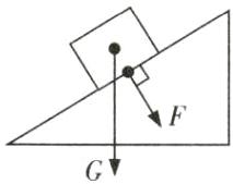 [解析]过物体重心画带箭头的线段,方向竖直向下,符号为G;在斜面上选取物体与接触面上的一点为压力的作用点,过压力作用点画垂直并指向斜面、带箭头的线段,符号为F,如图所示。