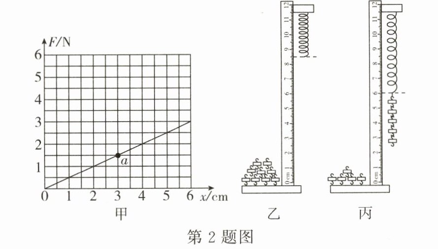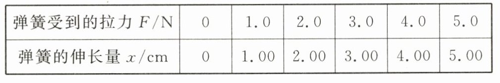 (1)分析图甲的数据,得到实验结论:弹簧受到的拉力/弹簧的伸长量 = 常量(设为k),结合拉力和伸长量的单位,故k的单位为N/cm;代入数值:k = $\frac{F}{x}$ = $\frac{1.5N}{3cm}$ = 0.5N/cm;