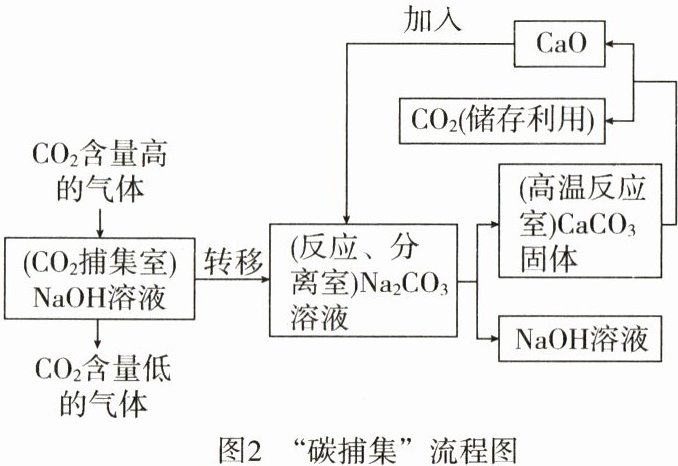 (3) 人为努力:工业上一种利用NaOH(氢氧化钠与氢氧化钙性质相似,都可与CO₂反应,但氢氧化钠反应没有现象)溶液实现“碳捕集”技术的流程如图2所示。
