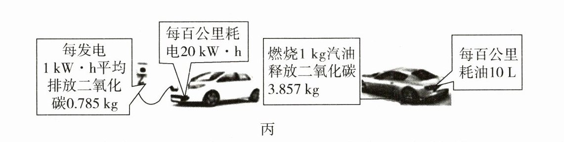 (3) 交通领域的“以电代油”可以来实现“减碳”目标。图丙为某纯电动汽车与某燃油汽车的相关数据,请回答: