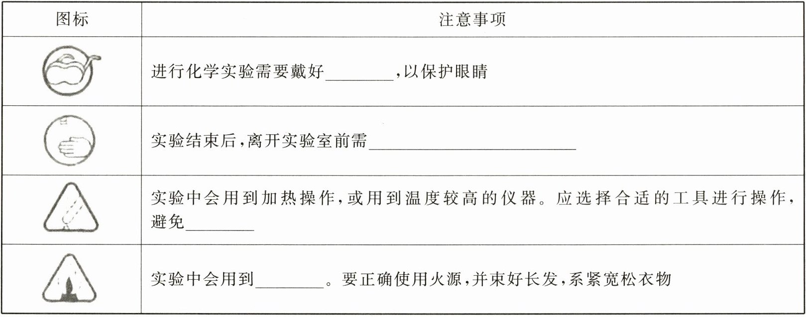 10. 回归教材 填写下列与实验有关的图标分别代表哪些注意事项。