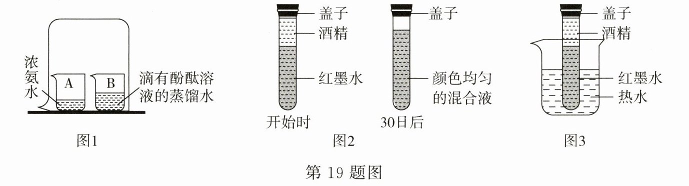 (3)如果继续完成图3实验操作,对比实验2可知,得到颜色均匀的混合液需要的时间远小于30日,可以得出的结论是温度越高,分子运动的越快。故答案为:温度越高,分子运动的越快。