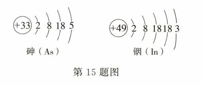 (2)砷原子的最外层电子数是5,容易得到3个电子形成As³⁻,砷化铟的化学式是InAs。
