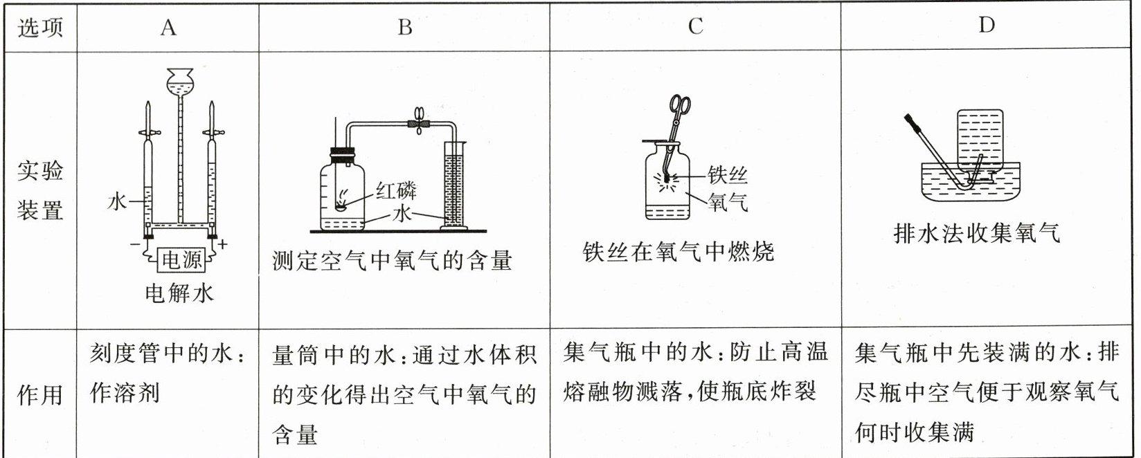 A [解析]A.该装置为电解水装置,电解水产生氢气和氧气,因此刻度管中的水作反应物,不是溶剂,故选项A错误,符合题意;