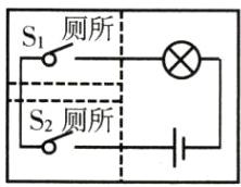 22. 在火车车厢后面有两个厕所,只有当两个厕所的门(相当于开关)都关上时,车厢指示灯才会发光,指示牌才会显示“厕所有人”字样,提醒旅客两个厕所内都有人。请你把图中的各元件符号连接成符合上述要求的电路图。