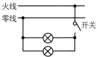 21. 某教室天花板上有多组“220 V 15 W”的节能灯,请将图中的灯泡和开关连入家庭电路。要求均符合安全用电原则,且一个开关同时控制两盏灯,每盏灯都能正常发光。