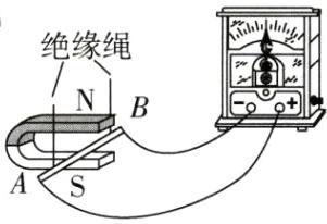 23. (2024·新疆中考)如图所示,用蹄形磁体、导体棒AB、电流表等实验器材探究导体在磁场中运动时产生感应电流的条件。