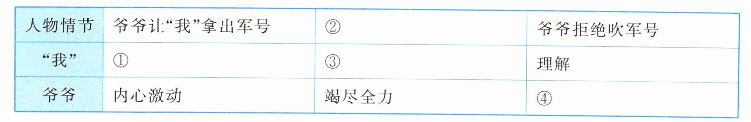 ①惊讶 ②爷爷想吹军号 ③紧张 ④伤心、难过