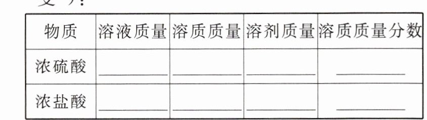 2.盛放浓硫酸和浓盐酸的试剂瓶敞口露置在空气中一段时间,可能发生什么变化?将判断的结果填入下表(填“变大”“变小”或“不变”):