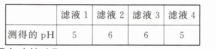 【实验记录】同学们分别进行了四次实验测定滤液的酸碱度,实验数据记录如下: