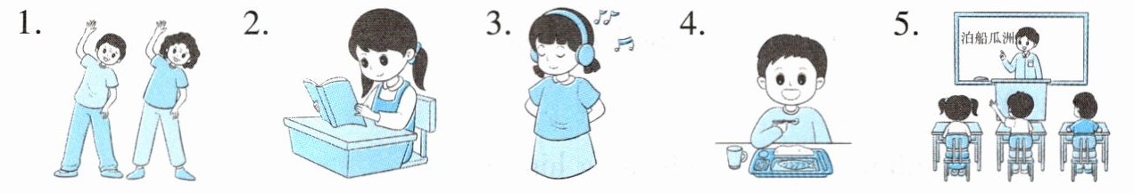 5. It’s 9 o’clock. The students are ________ ________ ________ ________.