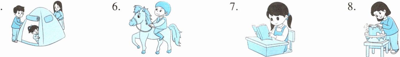 1. cleaned 2. played 3. watched 4. took 5. went 6. rode 7. read 8. washed