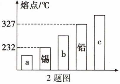 (2)大多数合金的熔点比组成它的纯金属的熔点低,因此题图能表示锡铅合金的是a。