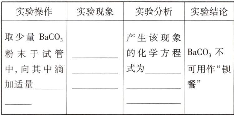 【提出问题】与$BaSO_4$一样,$BaCO_3$也不溶于水,有同学提出$BaCO_3$是否也可用作“钡餐”?