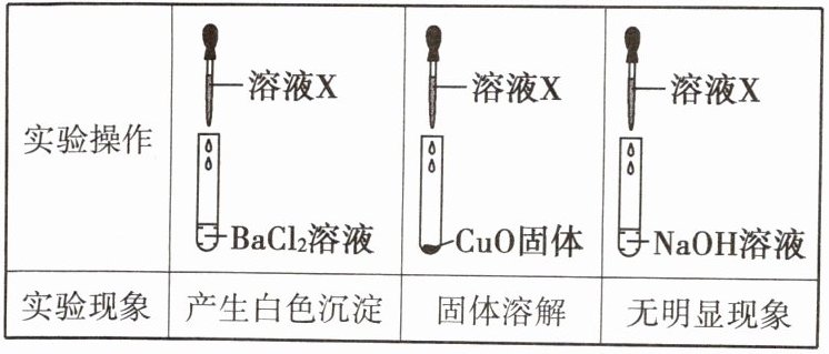 13 已知溶液 X 可能为稀盐酸、稀硫酸或硫酸钠溶液三者之一。为判断其成分,取三份等量的该溶液,分别加入 BaCl₂ 溶液、CuO 固体、NaOH 溶液中,产生的现象如图所示。下列对该溶液的判断不正确的是 ( )