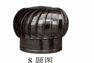 8.(苏州中考)屋顶风帽是利用自然风使风帽旋转实现室内换气的装置,如图所示。它不用电,无噪声,节能环保。只要速度为0.2 m/s的微风即可让其轻盈运转。风帽转动时其内部空气流速变大、压强________,室内的污浊气体在________作用下被排出。水平方向的风,从不同方位吹来,风帽的转动方向________。
