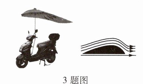 3.(东营中考)近期交警部门加大了对电动车安装遮阳伞的检查拆除力度。遮阳伞虽能遮挡阳光,但存在安全隐患,当电动车快速行驶时,如图所示,下列说法正确的是 ( )