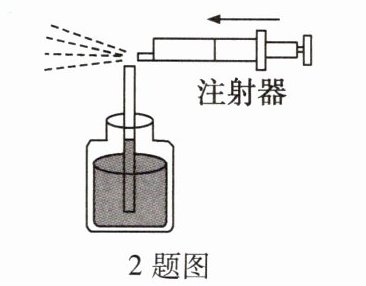 2. 注射器吸取药液是利用了________原理;如图所示,先将注射器的活塞拉出一部分再向里推,吸管内水面上升是因为吸管上方空气流速大,压强________。