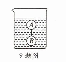 9.(东营中考)用细线将两个半径相同的实心小球A和B连接在一起,放入水中,静止后的状态如图所示,线已绷紧。下列判断正确的是 ( )