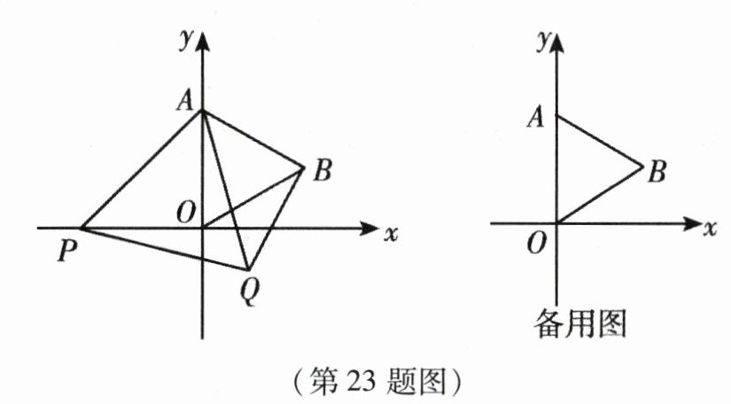 23. (本小题12分)如图,在平面直角坐标系中,已知点A(0,2),△AOB为等边三角形,P是x轴上一个动点(不与原点O重合),以线段AP为一边在其右侧作等边三角形△APQ.