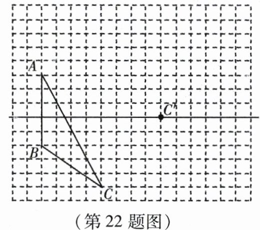 22. (本小题12分)画图并填空:如图,方格纸中每个小正方形的边长都为1.在方格纸中将△ABC经过一次平移后得到△A'B'C',图中标出了点C的对应点C'.