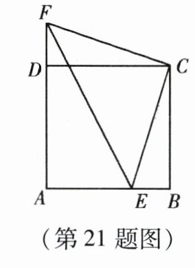 21. (本小题10分)如图,四边形ABCD是正方形,点E是AB边上的点,BE = 1.将△BCE绕点C顺时针旋转90°得到△DCF.已知EF = 2√5.求正方形ABCD的边长.