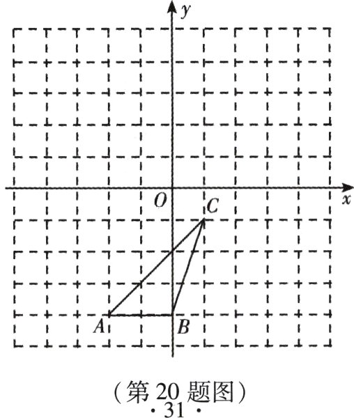 20. (本小题8分)如图所示的直角坐标系中,$\triangle ABC$各顶点的坐标分别是$A(-2,-4)$,$B(0,-4)$,$C(1,-1)$.