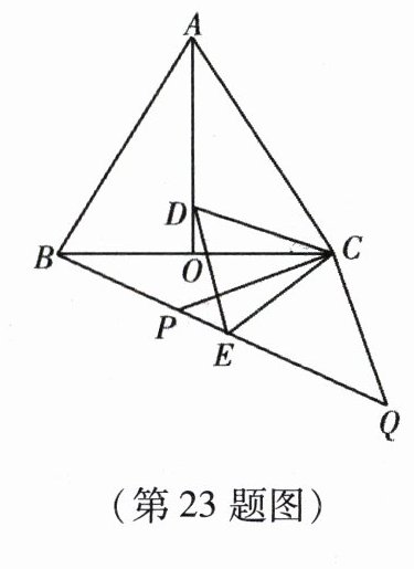 23. (本小题12分)如图,等边$\triangle ABC$中,$AO$是$\angle BAC$的角平分线,$D$为$AO$上一点,以$CD$为一边且在$CD$下方作等边$\triangle CDE$,连接$BE$.