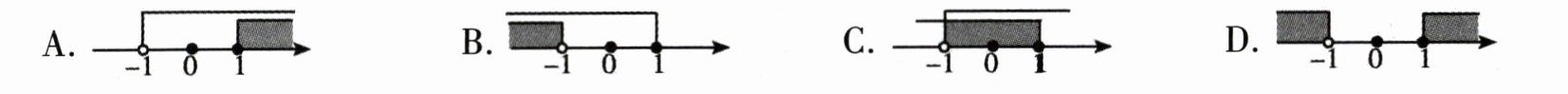 6. 把不等式组$\begin{cases}x + 1>0 \\ x - 1\leqslant0\end{cases}$的解集表示在数轴上,正确的是( )